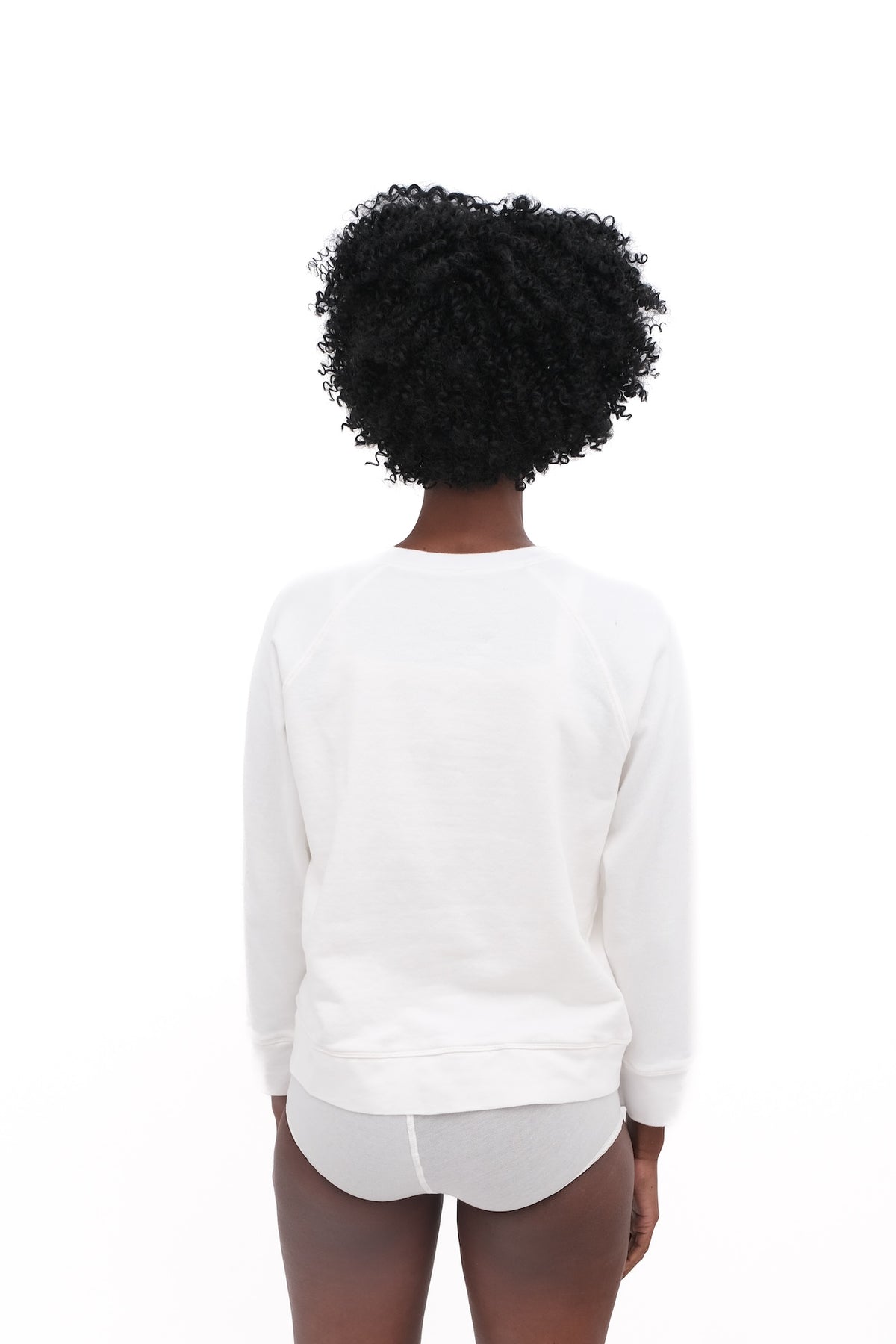 We stole this one right out of our little brother's dresser drawer. Our shrunken Crewneck Sweatshirt with cropped sleeves is a Domi Day super-fan favorite for a reason. The more you wash it, the more you love it.