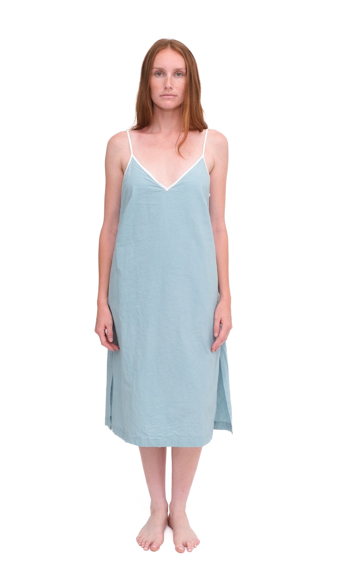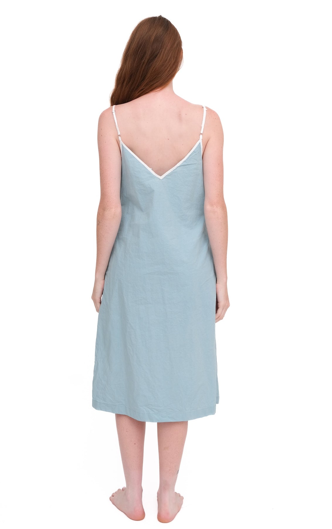 Front V, back V. Domi’s new Double-V Slip is a Very, Very lovely addition to our slip assortment (And yours). Designed with adjustable straps, easy side slits, and side pockets, it hits a hair past the knee for that perfect length: not too short, not too serious.