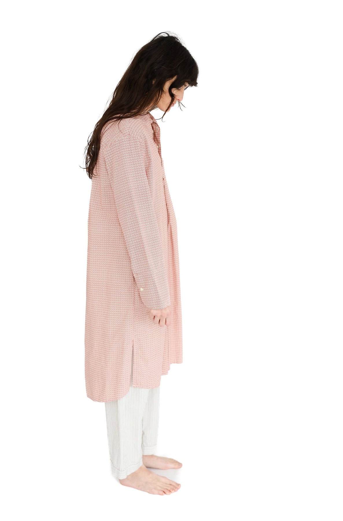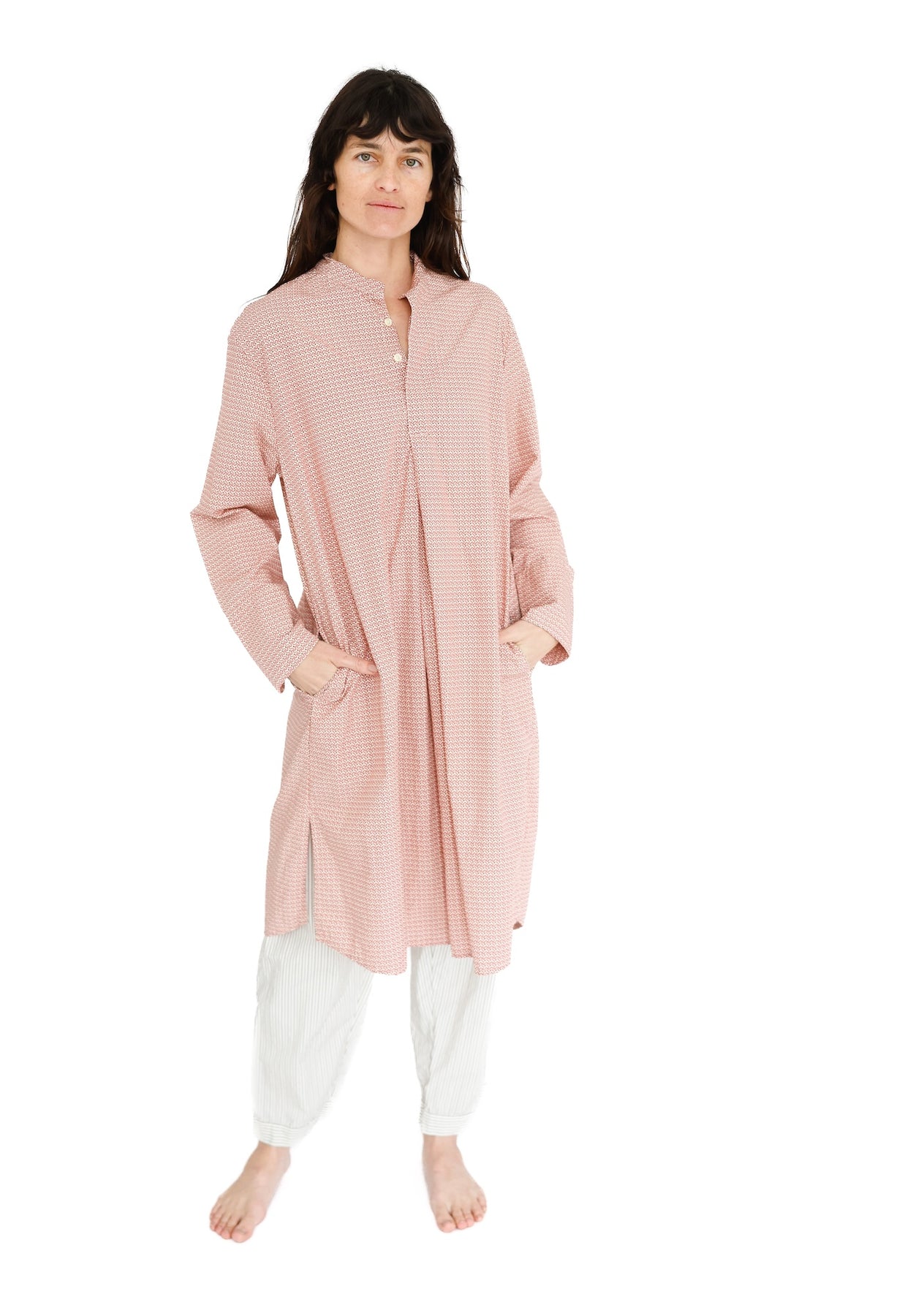 This dreamy Nightshirt is your permission to choose snooze.  A Domi classic, its simplicity and softness are simply irresistible.  The oversized cut falls at the knee, features side-seam pockets, and 3-button down-the front-details.