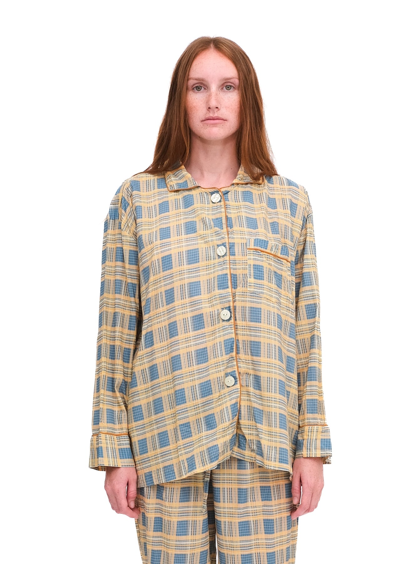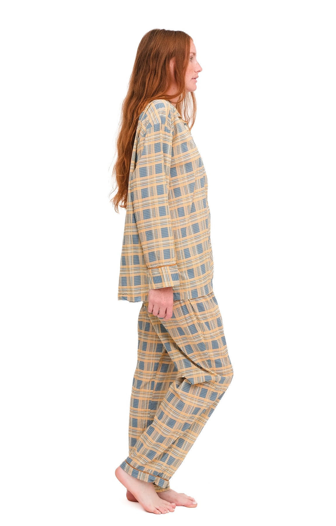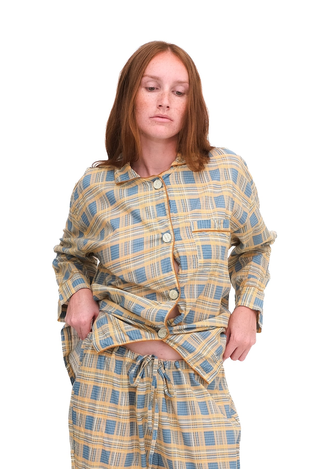 Overscheduled?  Overwhelmed?  Our Oversize PJ Set is the quickest way to get over it. The fit is “baggie-boyfriend”, with a generously cut, one-pocket top and loose, low-rise drawstring pant.  Wear them paired or as separates. Over and out.