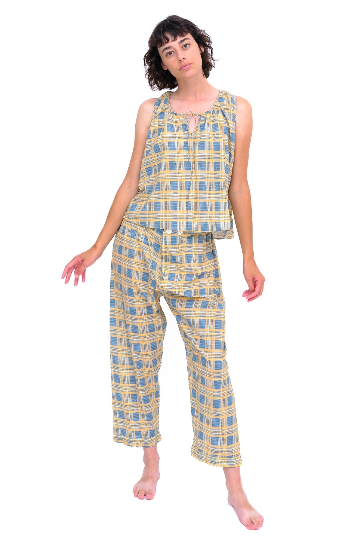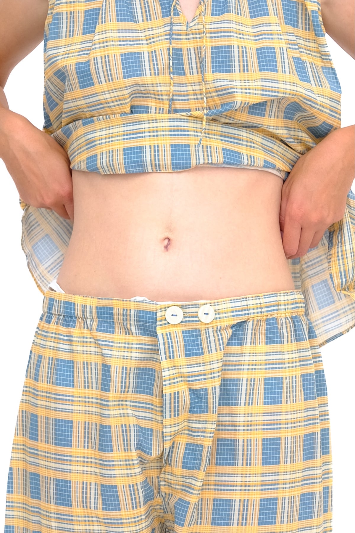 All Domi products are pre washed so shrinking is never a problem. Think before you wash, washing is hard on textiles and on the environment, washing your Domi at low temperatures and line drying is a great way to save measures. Always wash with “like “ colors and should you need to remove a stain use an oxiginated bleach ( we suggest oxy-clean). never chlorine bleach. Always remember to unbutton your buttons before washing, the swish-swish of the machine tugs at the threads.