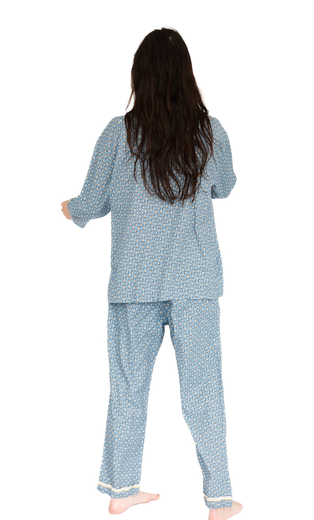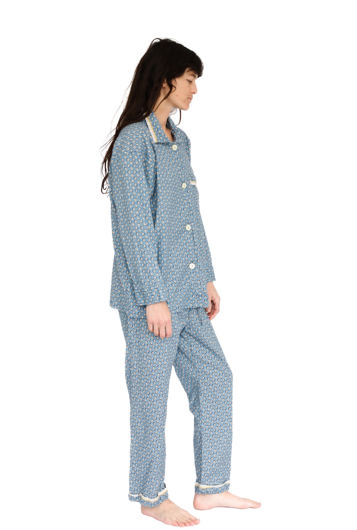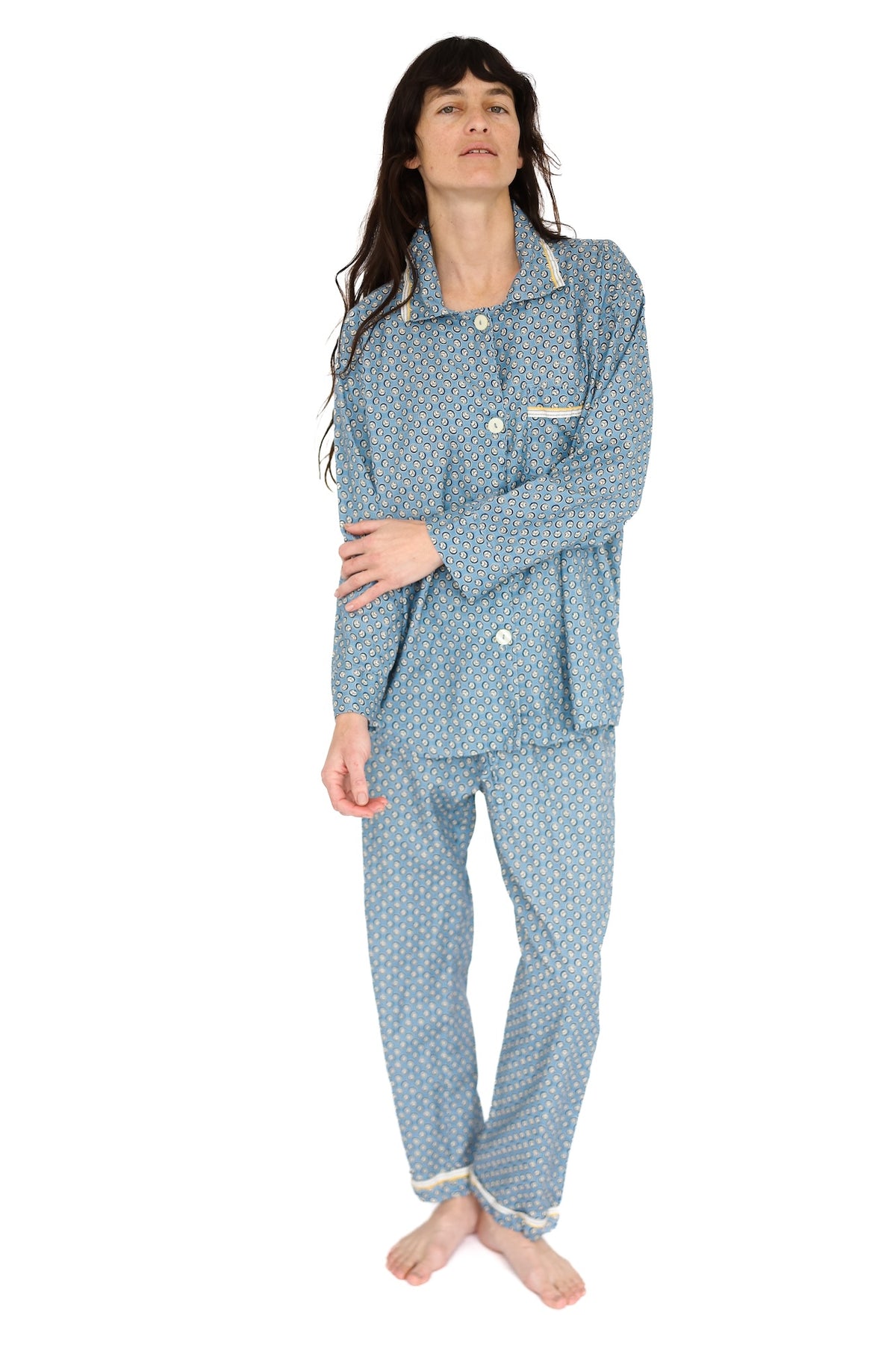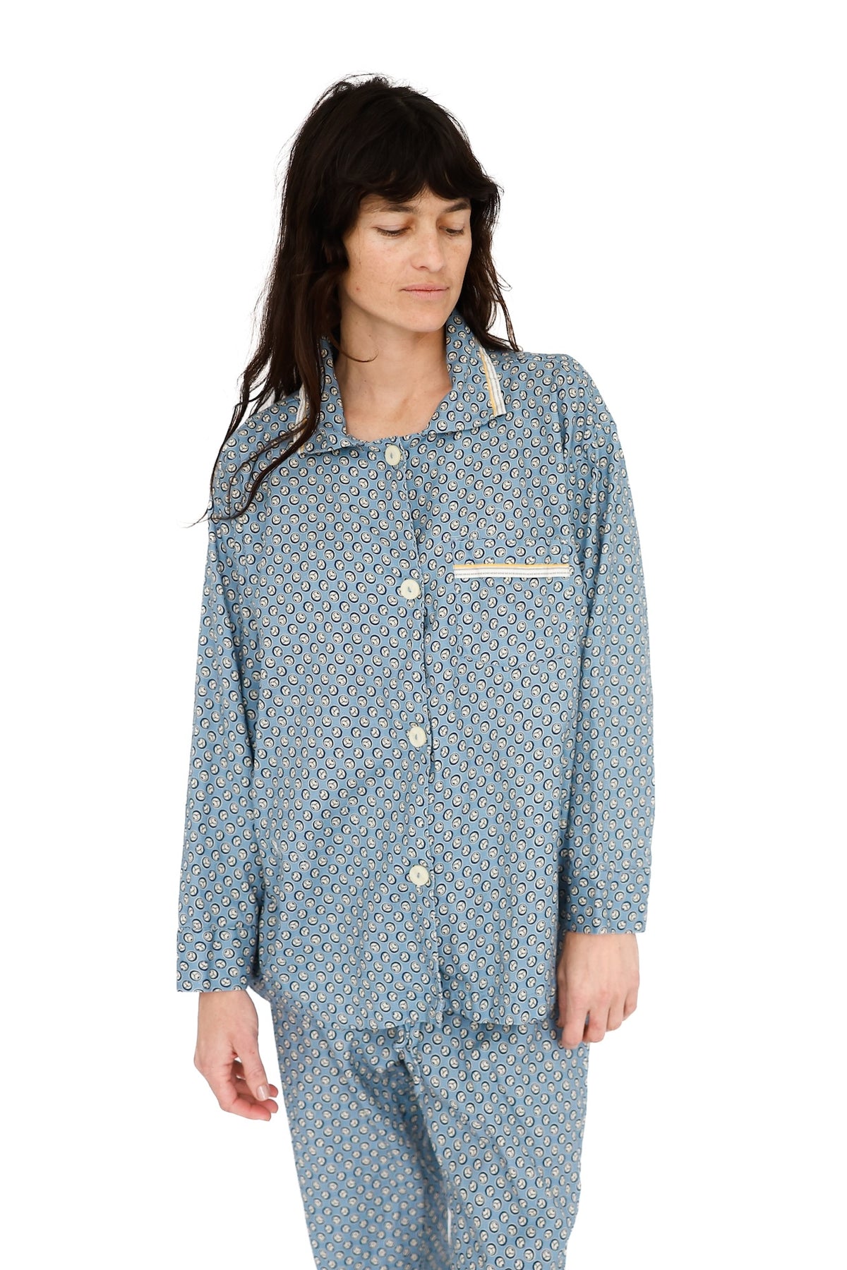 Overscheduled?  Overwhelmed?  Our Oversize PJ Set is the quickest way to get over it. The fit is “baggie-boyfriend”, with a generously cut, one-pocket top and loose, low-rise drawstring pant.  Wear them paired or as separates. Over and out.