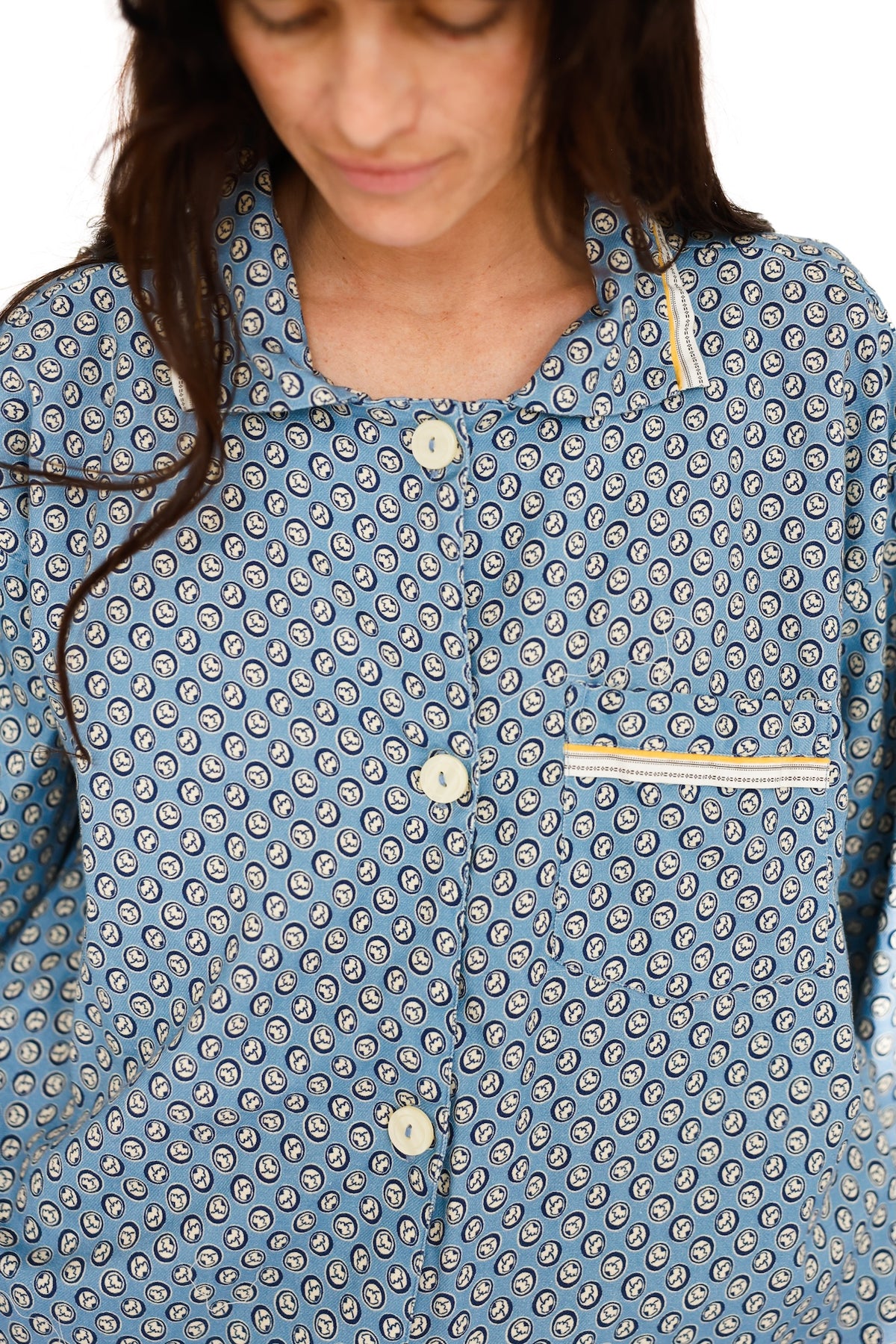 All Domi products are pre washed so shrinking is never a problem. Think before you wash, washing is hard on textiles and on the environment, washing your Domi at low temperatures and line drying is a great way to save measures. Always wash with “like “ colors and should you need to remove a stain use an oxiginated  bleach ( we suggest oxy-clean). never chlorine bleach. Always remember to unbutton your buttons before washing, the swish-swish of the machine tugs at the  threads.