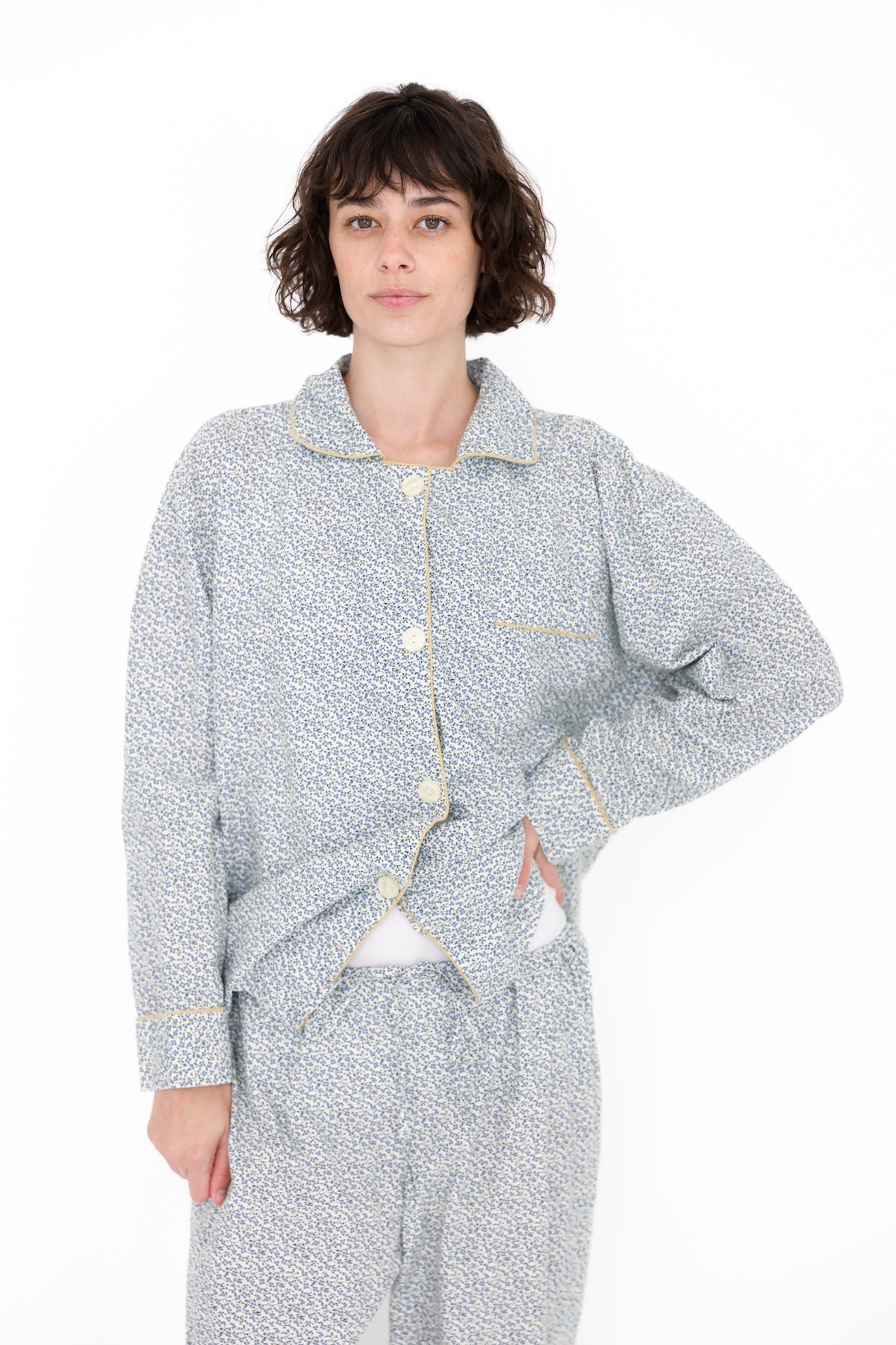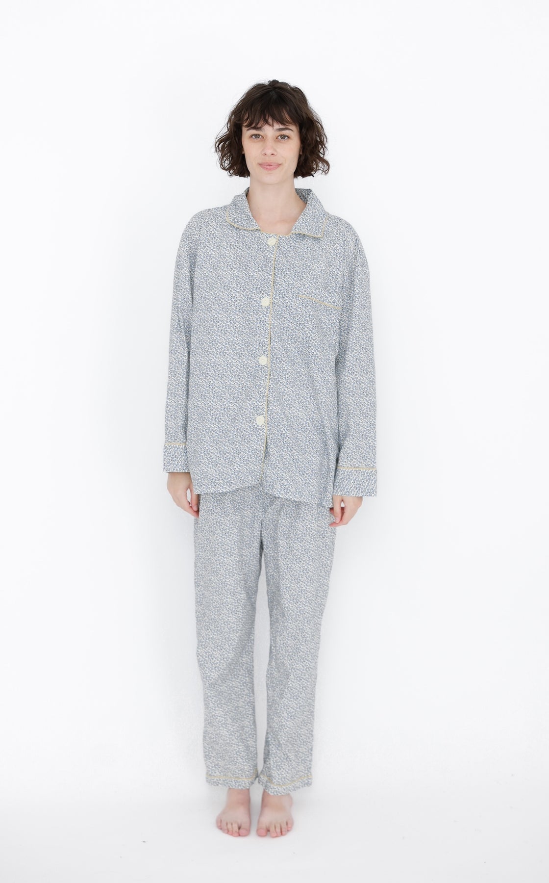 Overscheduled?  Overwhelmed?  Our Oversize PJ Set is the quickest way to get over it. The fit is “baggie-boyfriend”, with a generously cut, one-pocket top and loose, low-rise drawstring pant.  Wear them paired or as separates. Over and out.