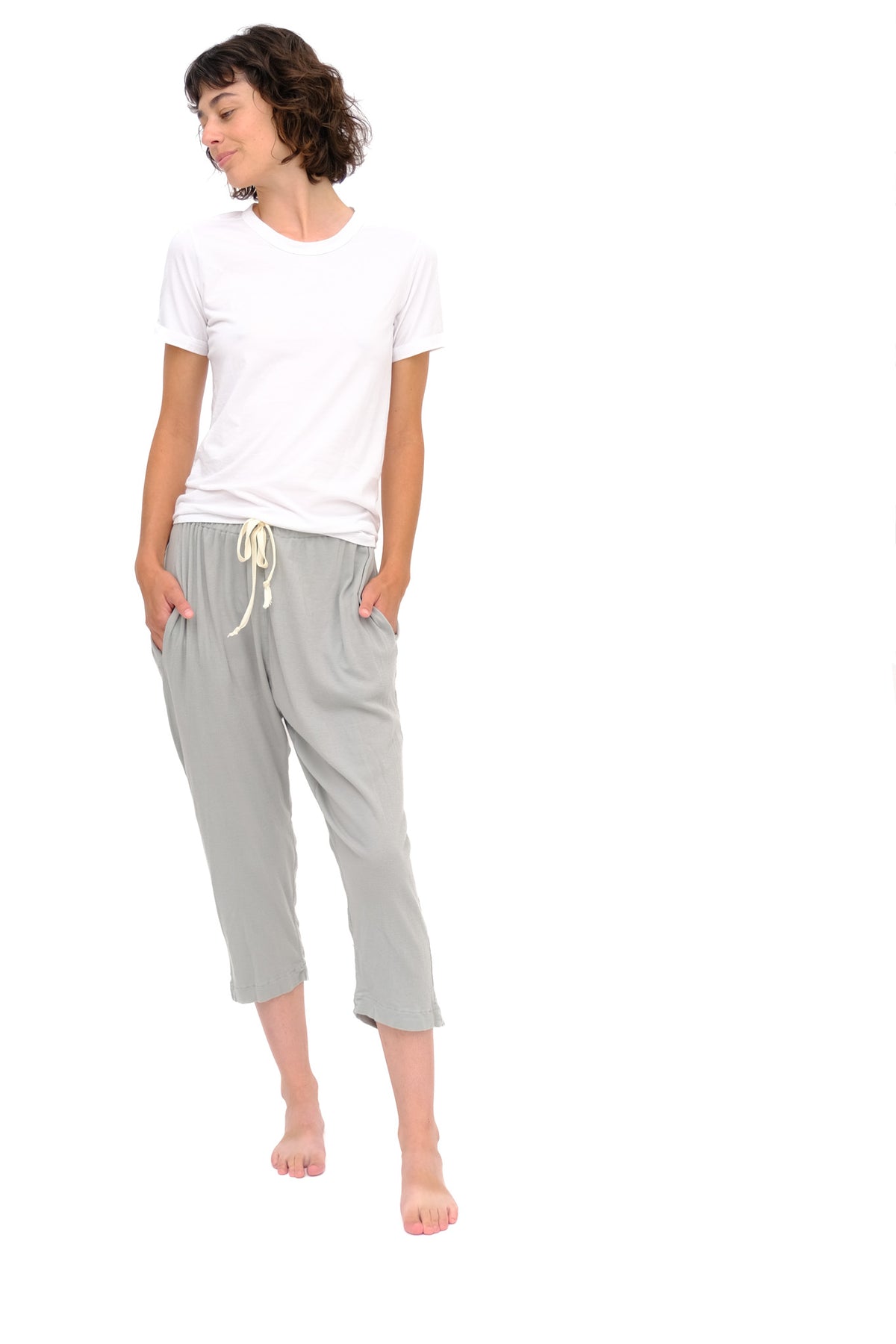 Laid-back living and loving it in Domi’s new, slouchy trouser pant. Designed to take you from day-to-night-to-day-again with an elastic and drawstring waistband, deep side pockets, and slightly dropped crotch, and a cropped leg, in the softest t-shirt cotton jersey.
