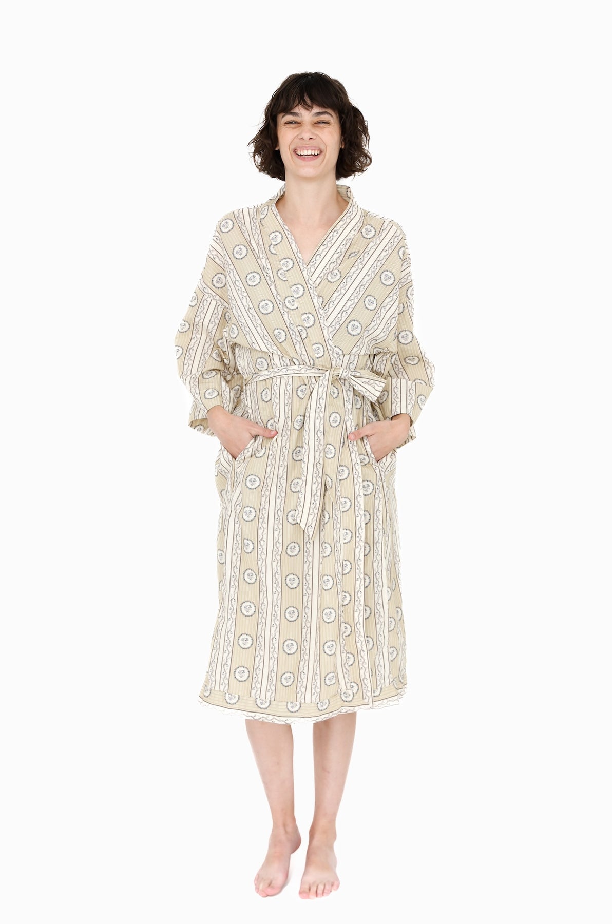 Not gonna lie.  There's no better way to start the day than feeling fine AF wrapped in the softest organic cotton.  And Domi´s got you covered, of course - fuller cut, longer length, side pockets, and sleeves that are wider and shorter.  Tie it high and go Kimono (when you're not going commando 😉).