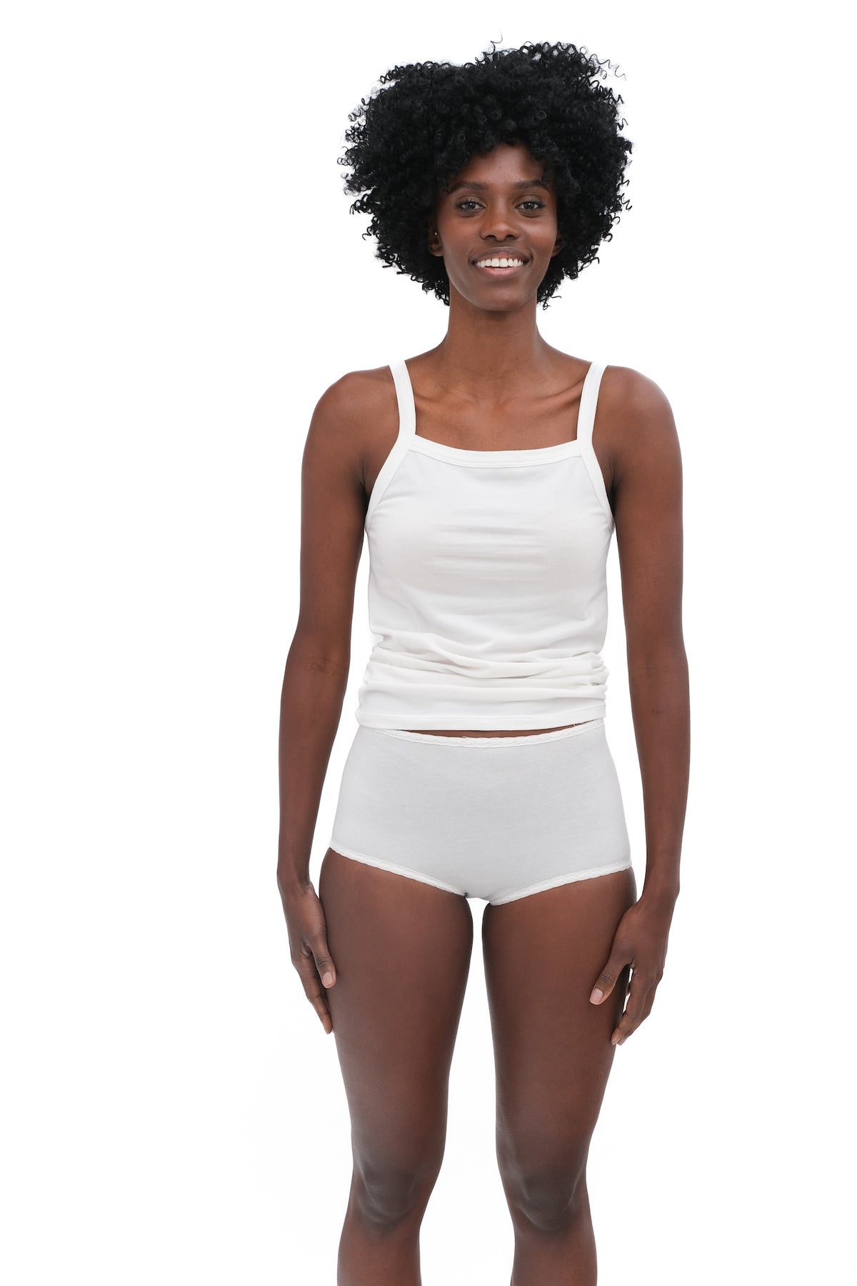 Not quite your grannie’s panties. This little cotton staple got a simple lacy upgrade with just a hint of trim at the leg and waist. Designed with the same single flatlock seam down the back as our perfect tee and square-neck tank, they pair in the prettiest way. Made from super soft in 92% Supima cotton they’ve also got a hint of Spandex-controlled stretch.