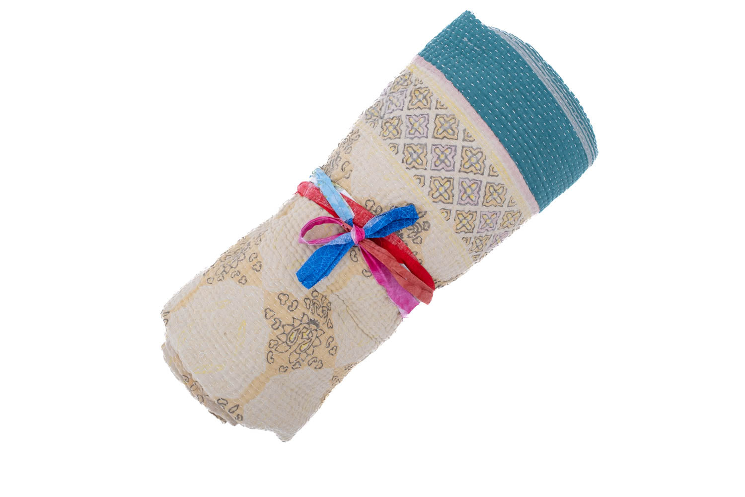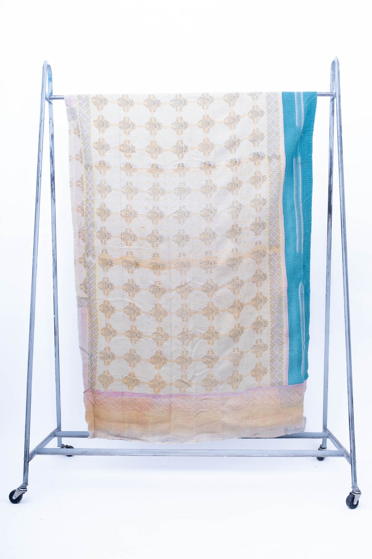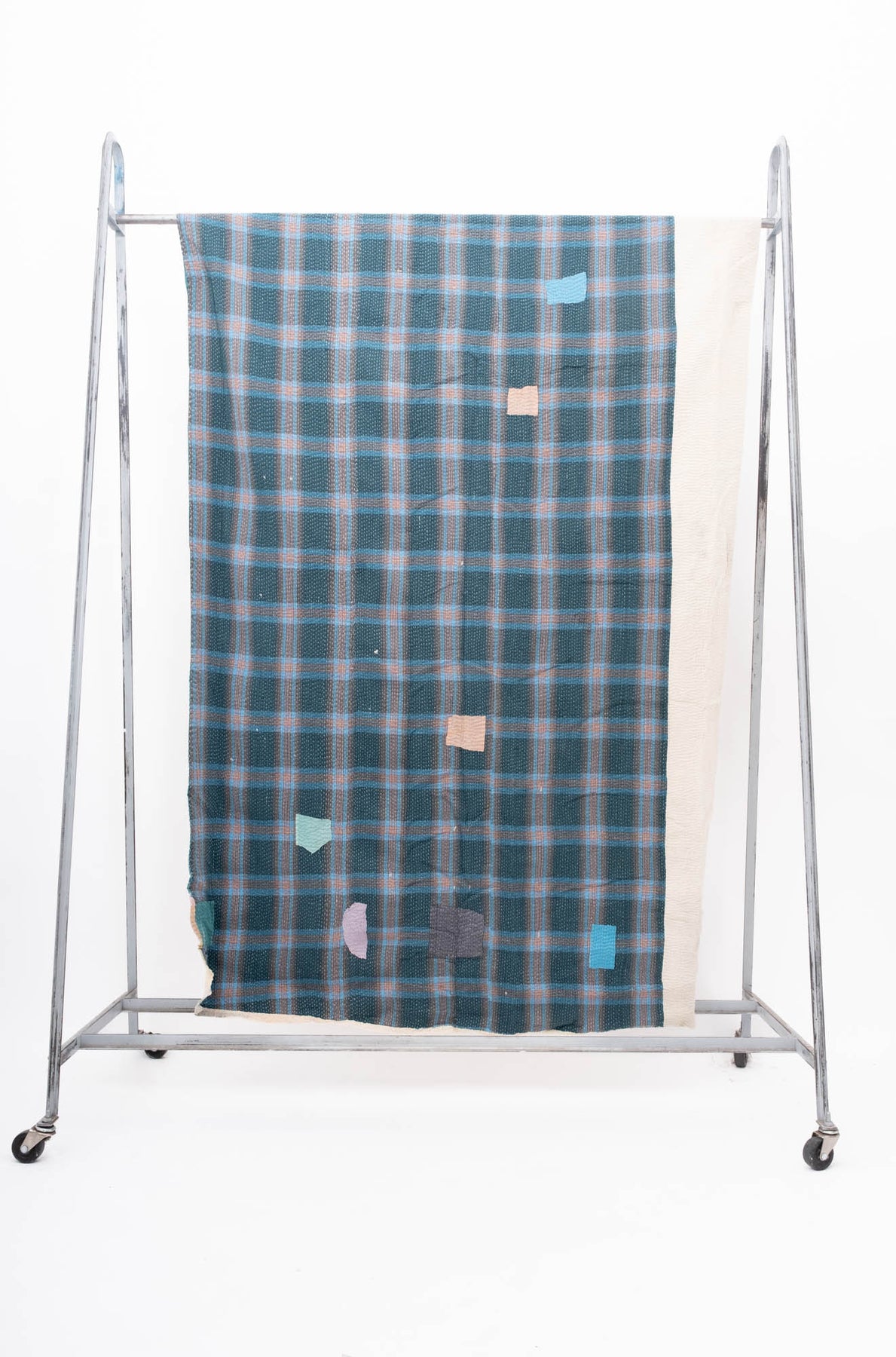 We have sourced these ridiculously charming Kantha quilts from a vintage dealer outside of Delhi. Kantha quilts are made by layering old saree’s and dhotis and stitching the layers with long running stitches that binds it all together. Our Domi Kanthas are super old, they have  amazing patching, fraying and some have a little discoloration.  Every one is a one of a kind hand made treasure.