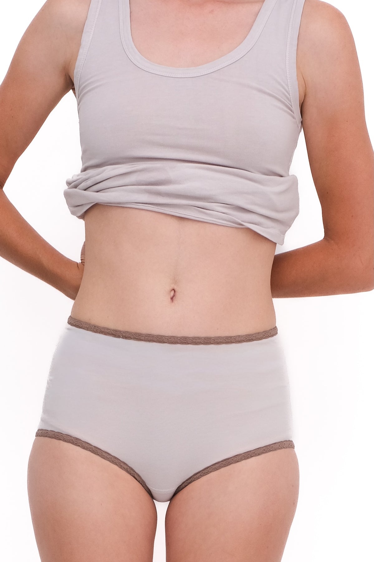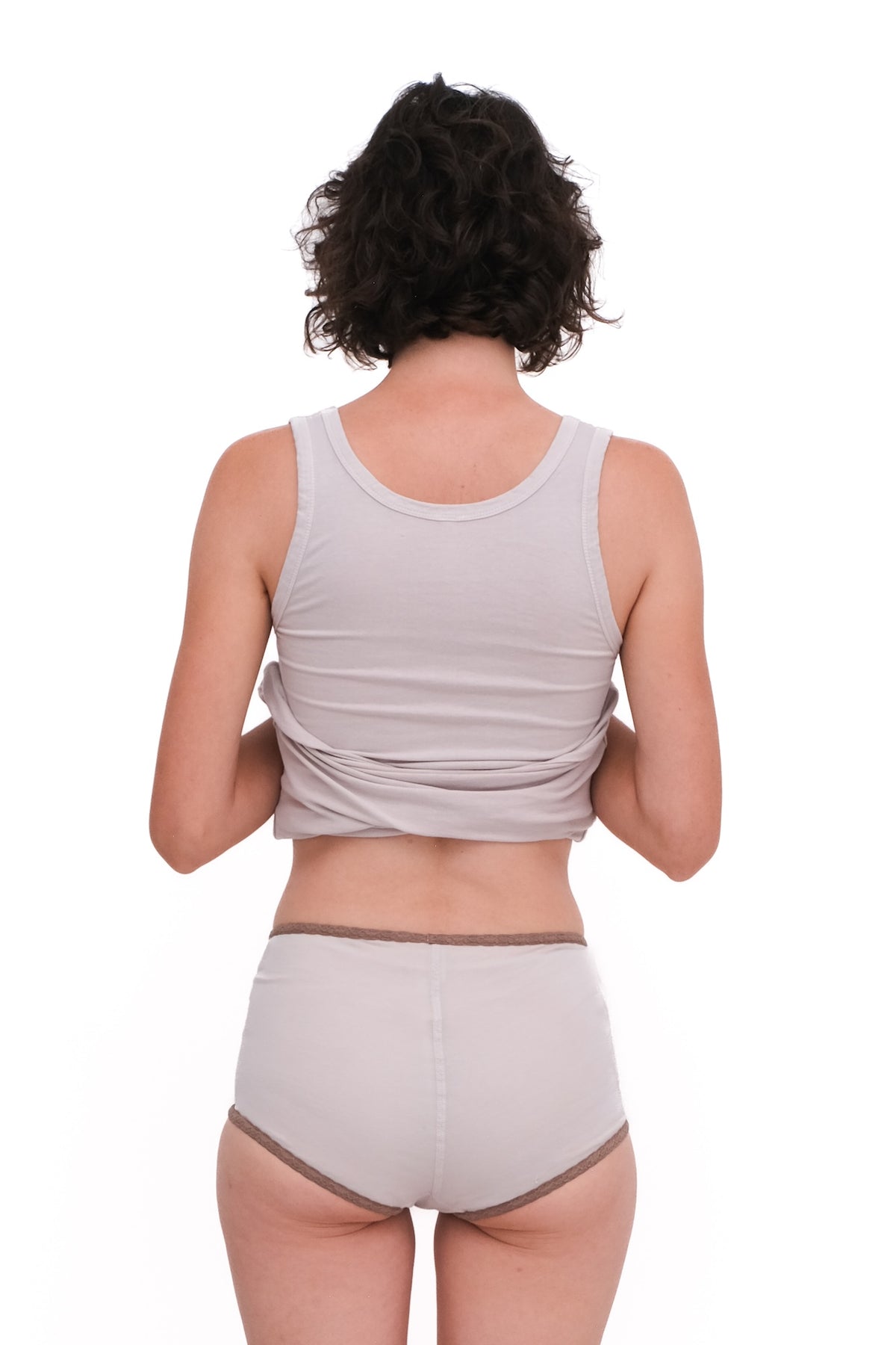 Not quite your grannie’s panties. This little cotton staple got a simple lacy upgrade with just a hint of trim at the leg and waist. Designed with the same single flatlock seam down the back as our perfect tee and square-neck tank, they pair in the prettiest way. Made from super soft in 92% Supima cotton they’ve also got a hint of Spandex-controlled stretch.