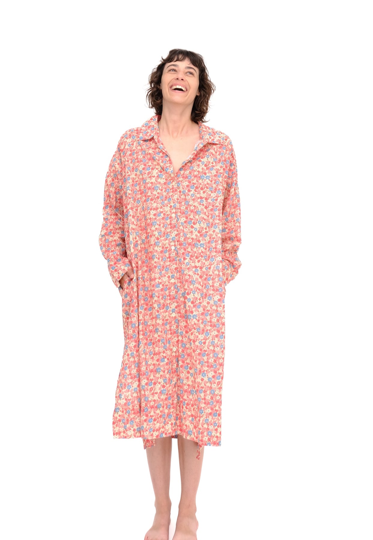The new Oversized Sleep Shirt from Domi refuses to go to bed. Cut oversized with a full button-down front and cuffed sleeves, it doubles as a dress when you want it to. Cozy, relaxed, and ready for whatever your night (or day) has planned.